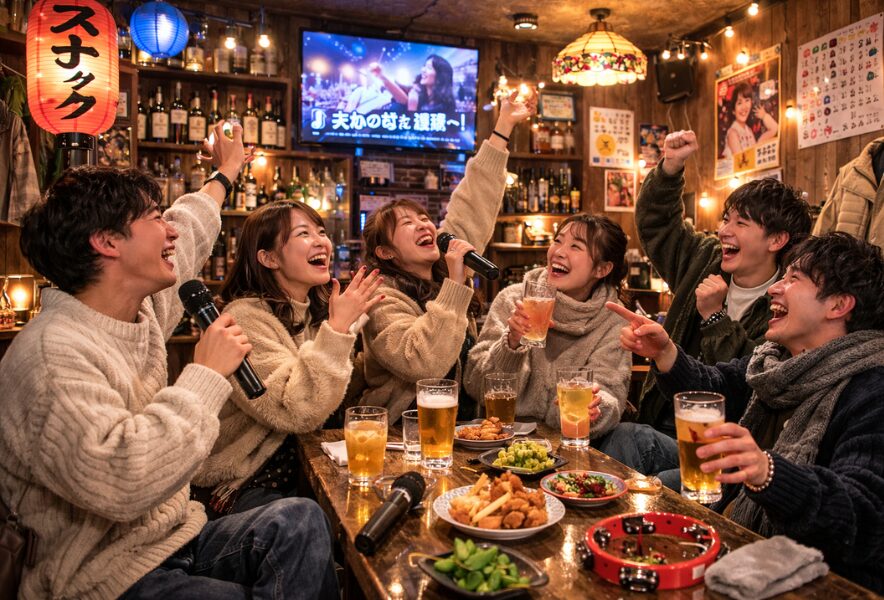 扉を開ければ、ママの一声で距離が縮まり、隣の席ともいつの間にか笑いが生まれる。京橋は「飲んで終わり」ではなく、「人と混ざって終わる」街です。昼は普通の駅前でも、夜になると一変する空気。その中心にあるのがスナック文化。サラリーマンも観光客も若いグループも、自然と輪の中へ。