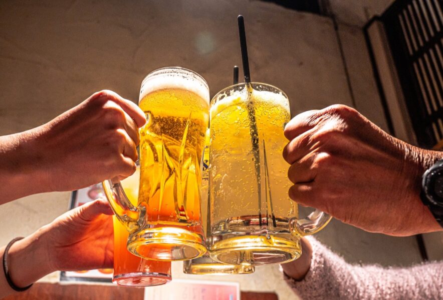 At the very start of a nomikai, no one drinks until the toast. When someone — usually a boss or organizer — calls out “Kanpai!” everyone raises their glass and drinks together. Jumping ahead and sipping early can feel a little rude, so it’s best to wait for the group moment.