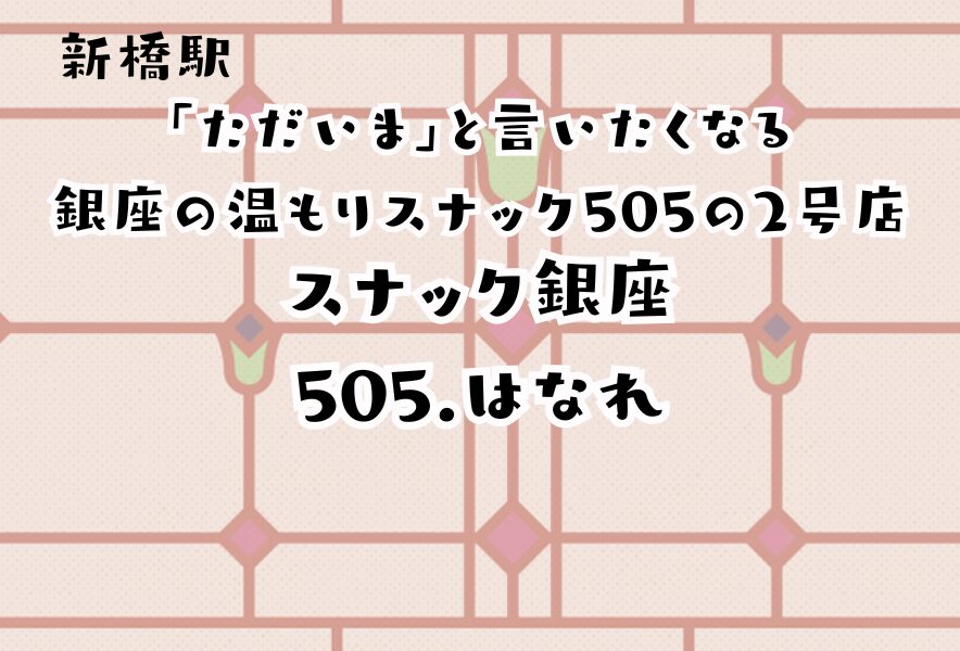 | 【新橋駅】「ただいま」と言いたくなる、銀座の温もりスナック505の2号店「スナック銀座505.はなれ」 | |