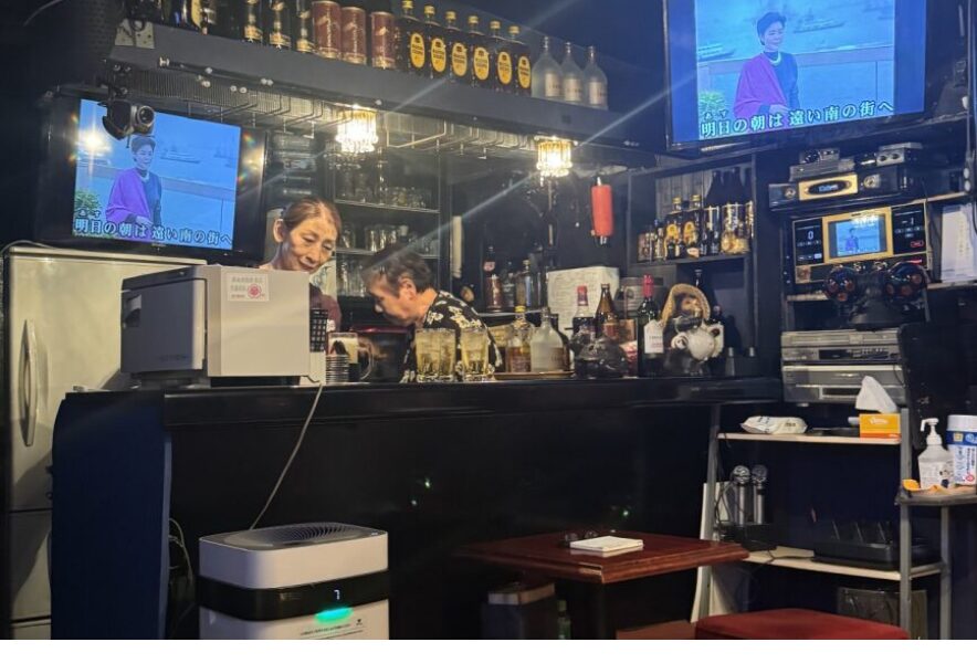 カウンター席でもソファー席でも、カラオケが始まるとつい立って歌いたくなるような空気に。気がつけばお店にいるみんなと一体感が生まれ、自然と仲間のような雰囲気になっていきます。