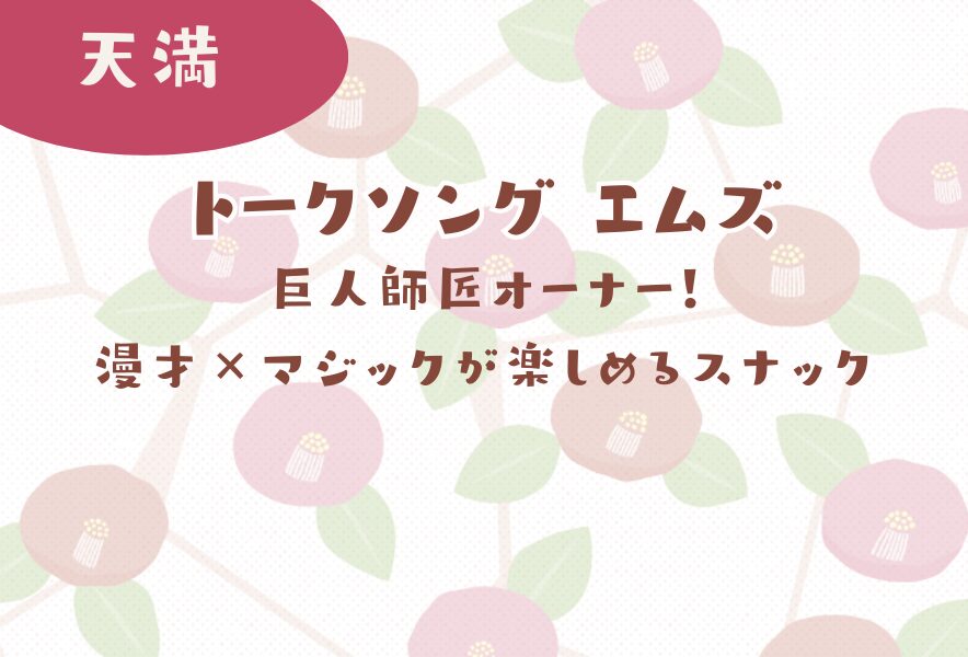 | 【天満:トークソング エムズ】巨人師匠オーナー!漫才×マジックが楽しめるスナック | |